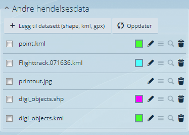 Andre hendelesdata kan lastes opp direkte i hendelesvisningen, fra importmodulen eller fra Tegn og mål.