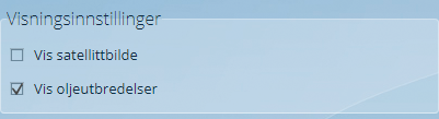 Under visningsinstillinger kan man styre synlighet for satellittbilde og oljeutberedelser.